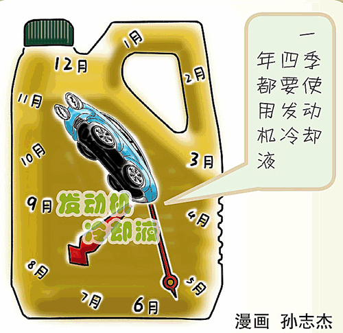 3.平時(shí)駕車應(yīng)隨車攜帶跟車上使用同品牌同型號(hào)的冷卻液,以備短缺時(shí)補(bǔ)加。